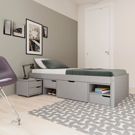 Cama Madera Maciza Con Cajones - 1 plaza - Línea Onix - Gris