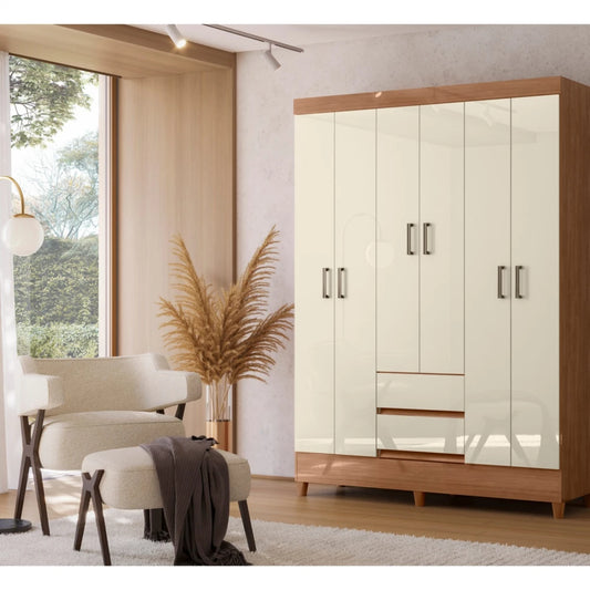 Ropero 4 puertas 2 cajones - Color Madera - Línea Colonial