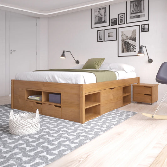 Cama Madera Maciza Con Cajones - 2 plazas - Natural