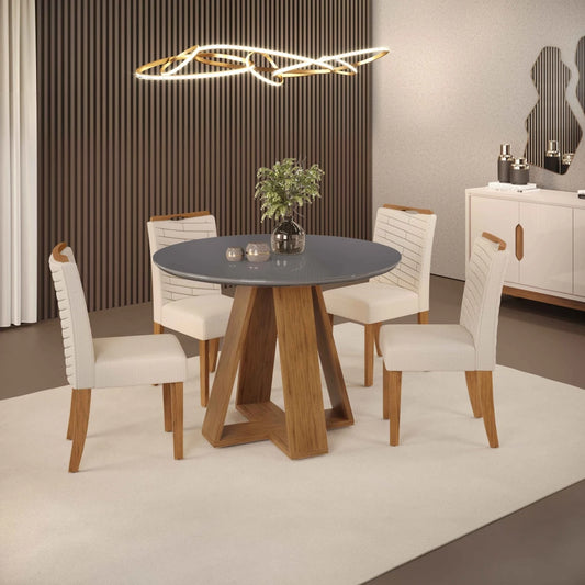 Juego De Comedor 4 Sillas Mesa Redonda Línea París Blanco/Gris