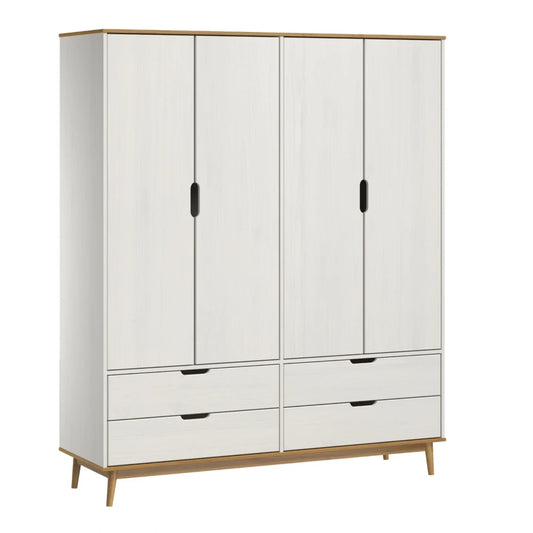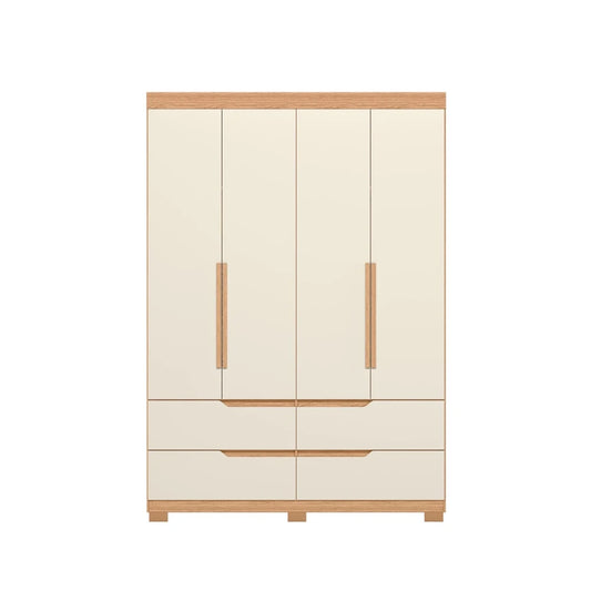 Ropero - 4 Puertas - 4 Cajones - Línea Praga - Roble/Blanco