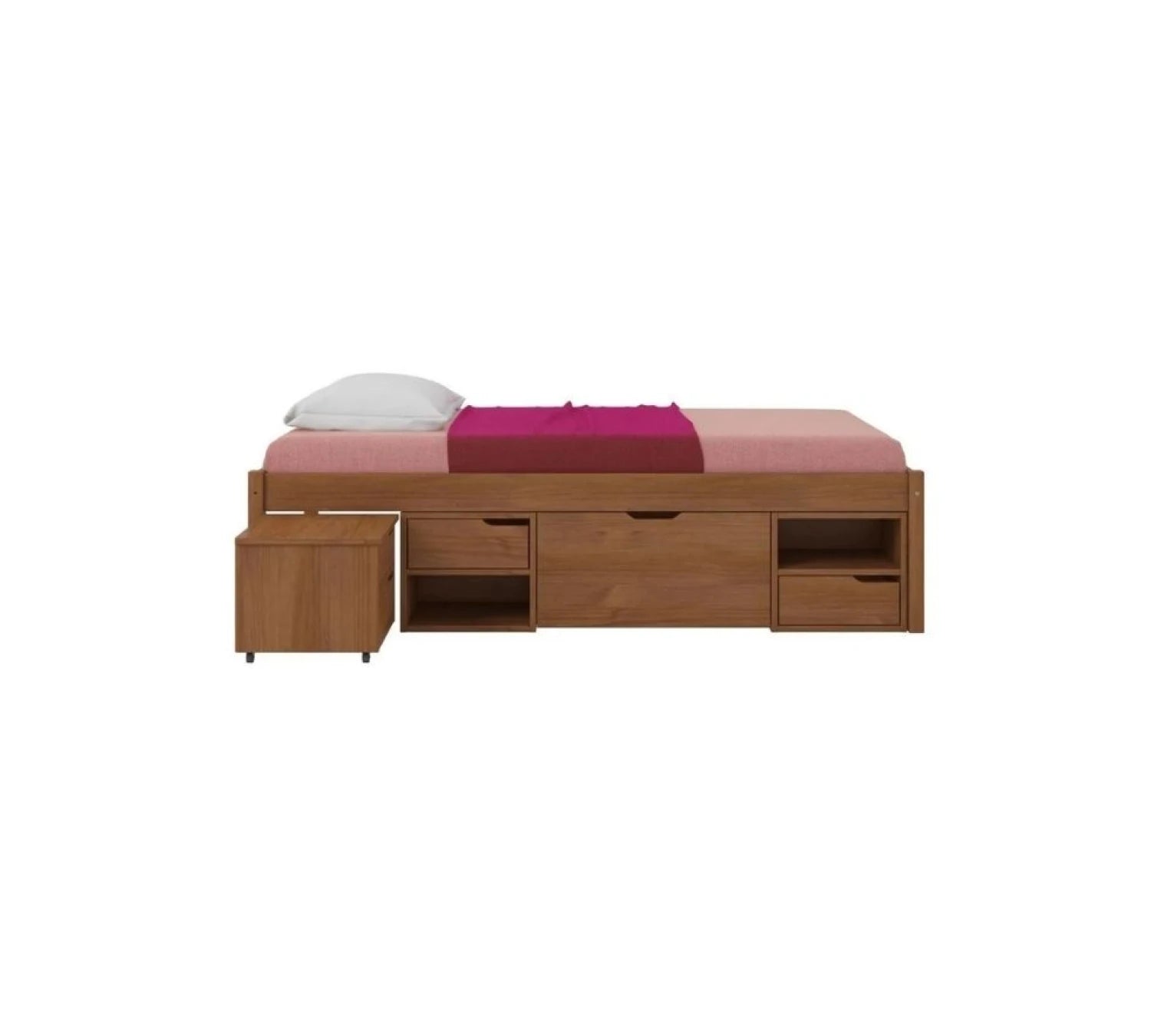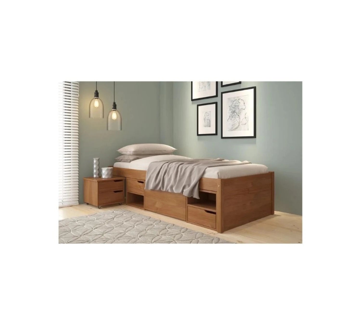 Cama Madera Maciza Con Cajones - 1 plaza - Línea Onix - Natural