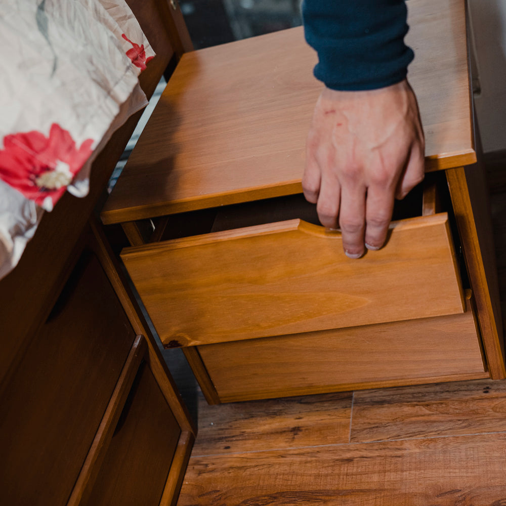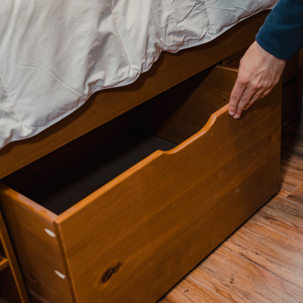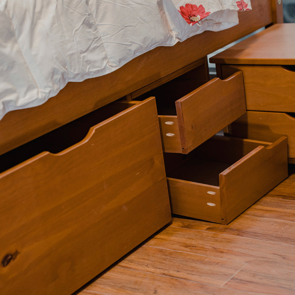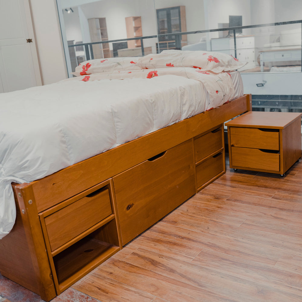 Cama Madera Maciza Con Cajones - Queen - Natural