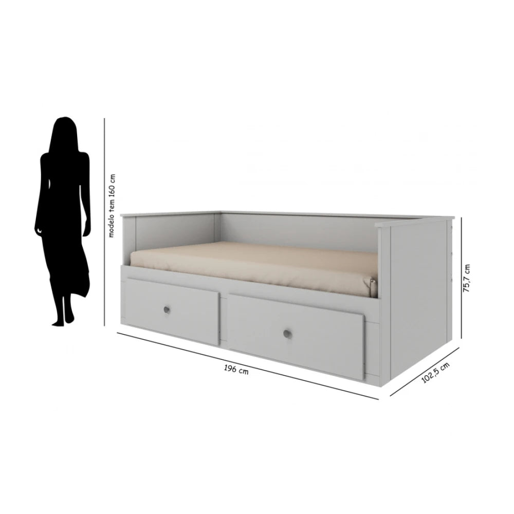 Cama Somnus 1 Plaza / auxiliar - Funcional - Gris