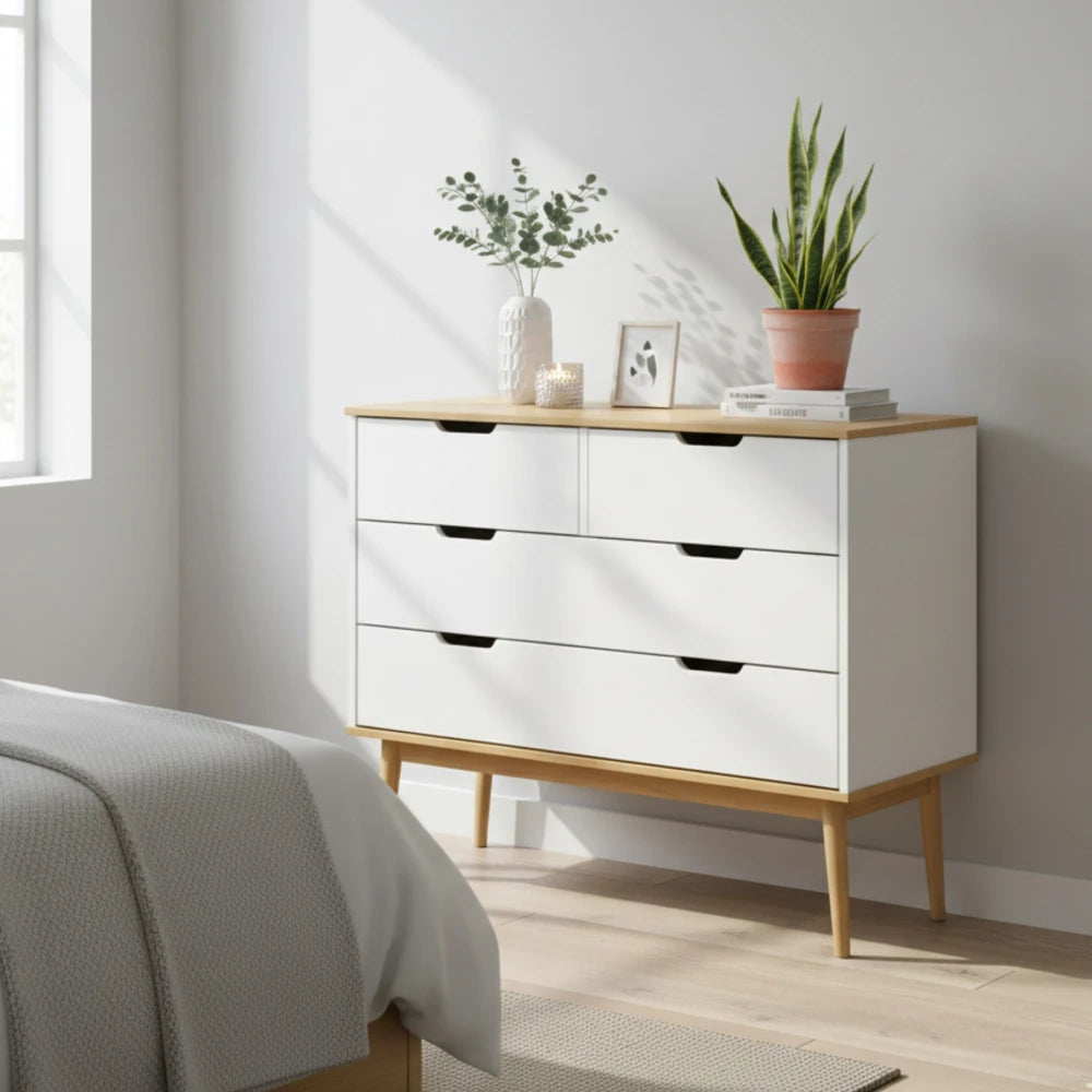 Cómoda 4 Cajones - Línea Praga - Roble/Blanco