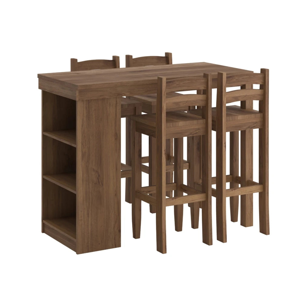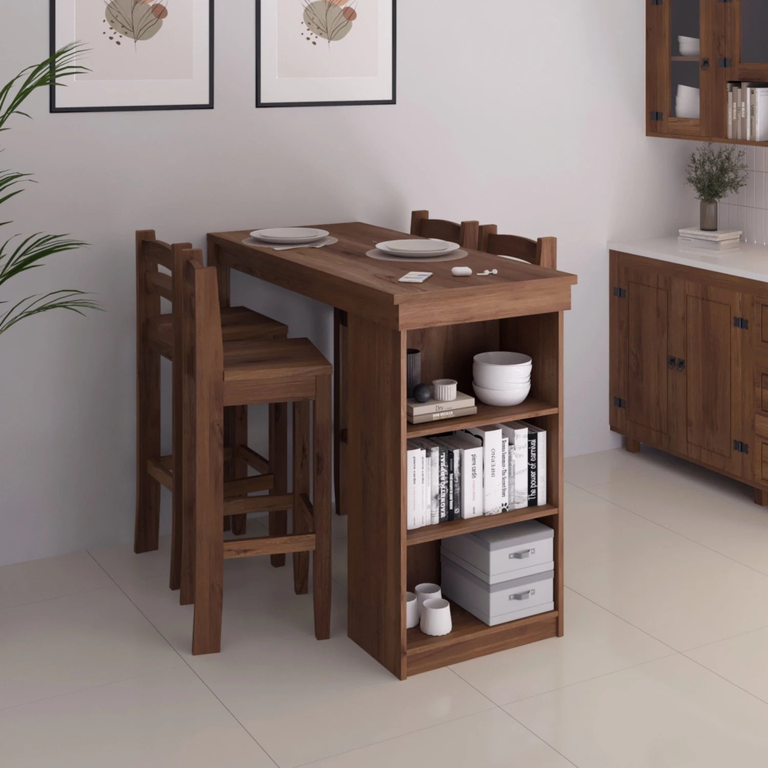 Desayunador 4 Bancos Cocina Comedor Madera - Nogal