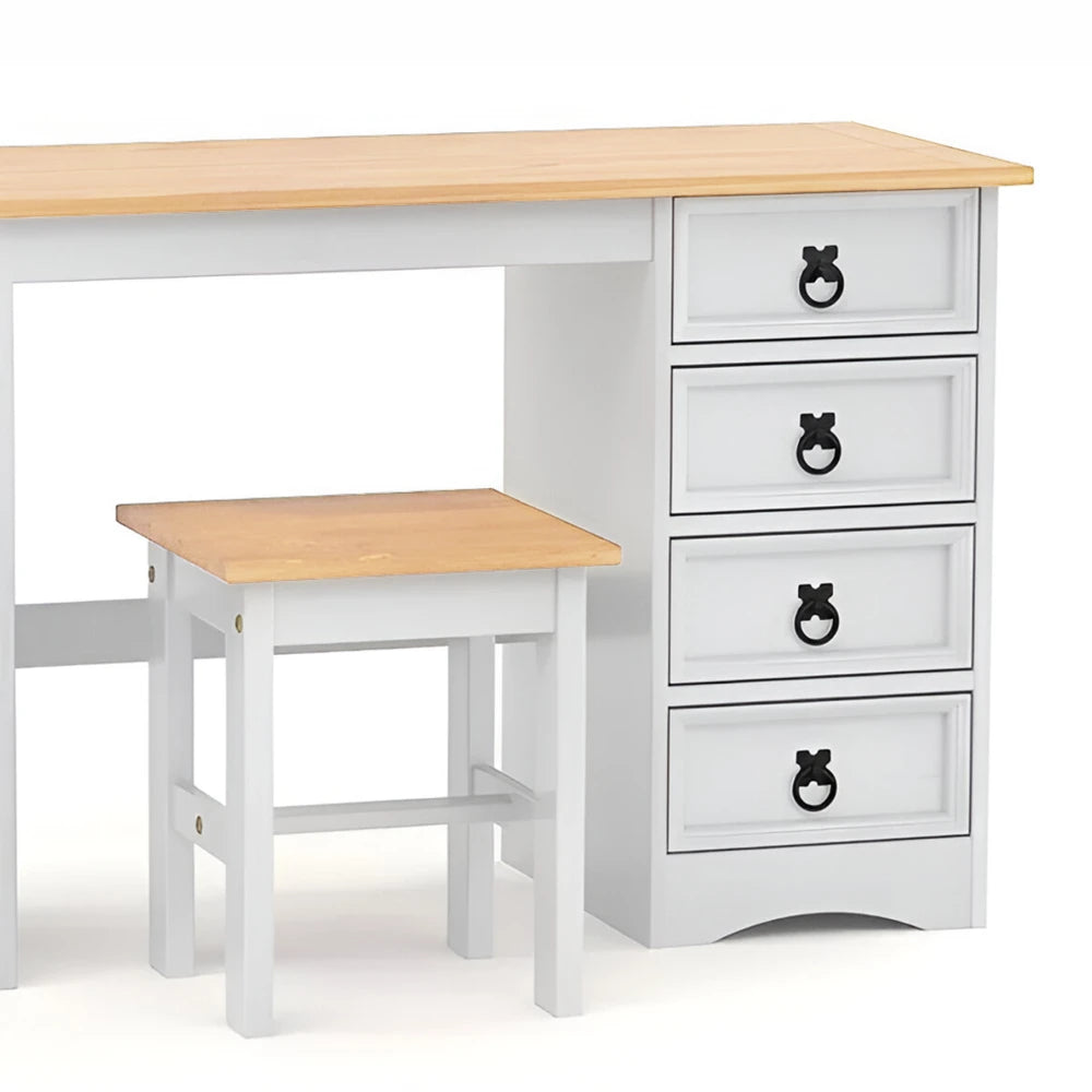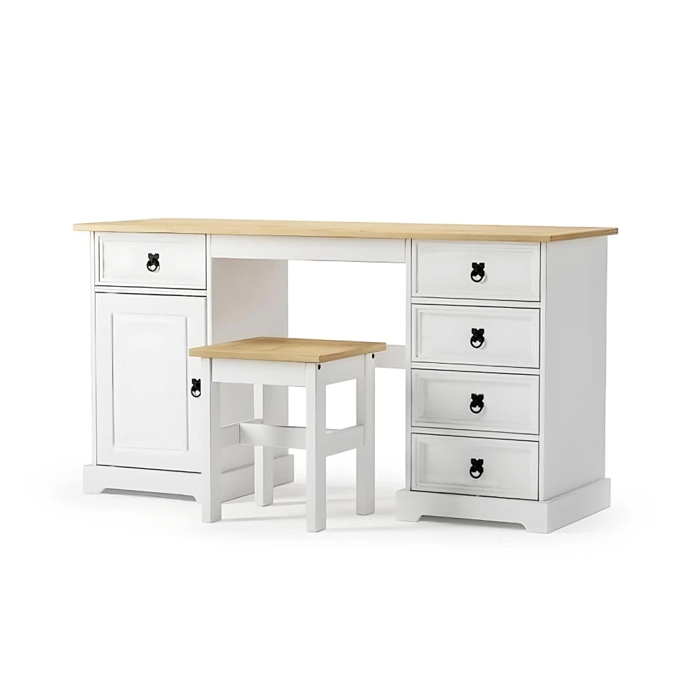 Escritorio - 5 Cajones + 1 Puerta + BANCO Blanco