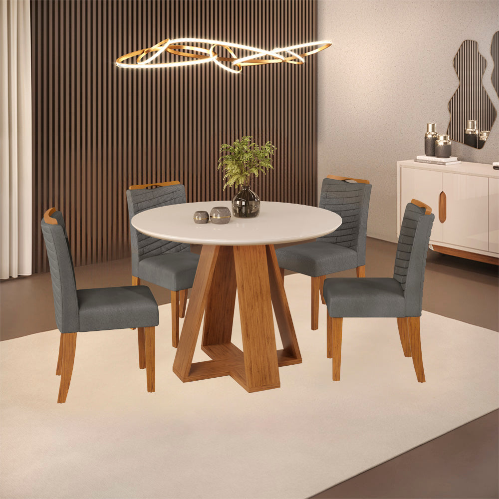 Juego De Comedor 4 Sillas Mesa Redonda Blanco y Gris Línea París