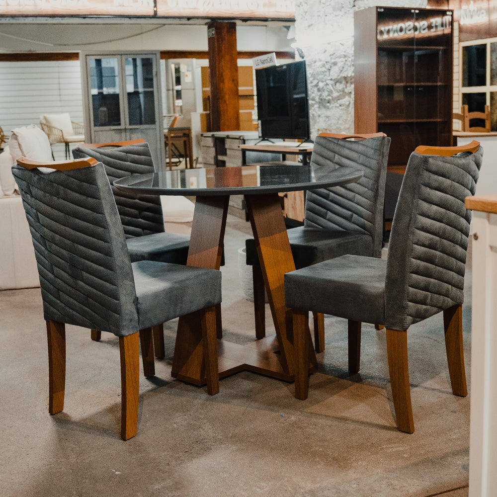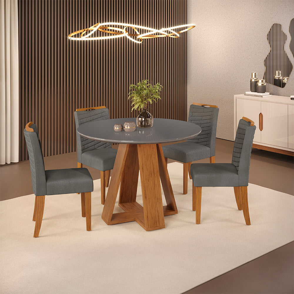 Juego De Comedor 4 Sillas Mesa Redonda Gris Línea París
