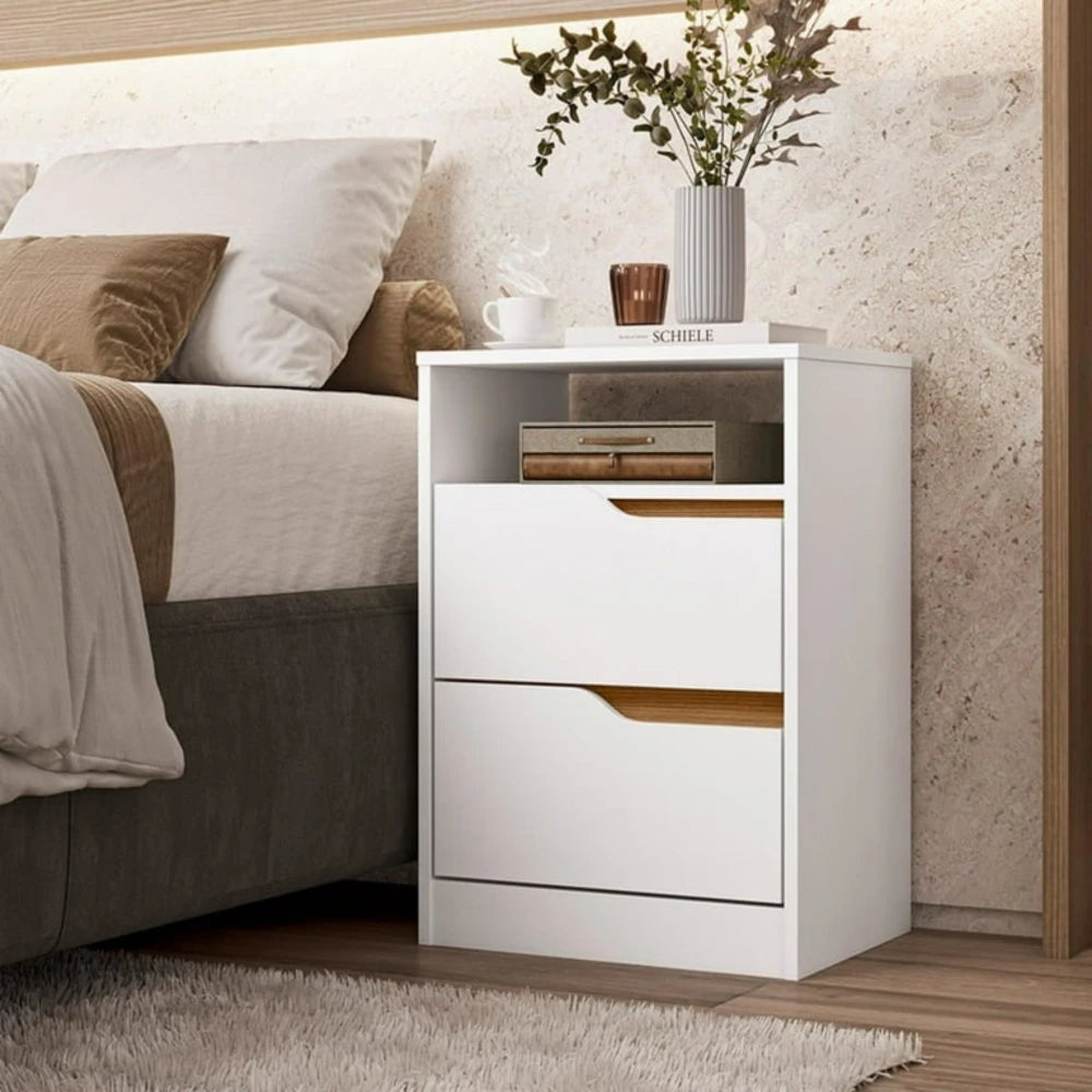Mesa de Luz 2 Cajones - Línea Fit - Blanco