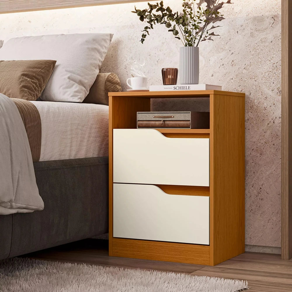 Mesa de Luz 2 Cajones - Línea Fit - Marrón/Blanco