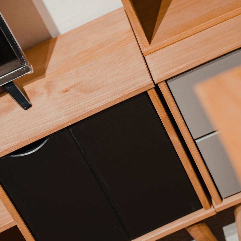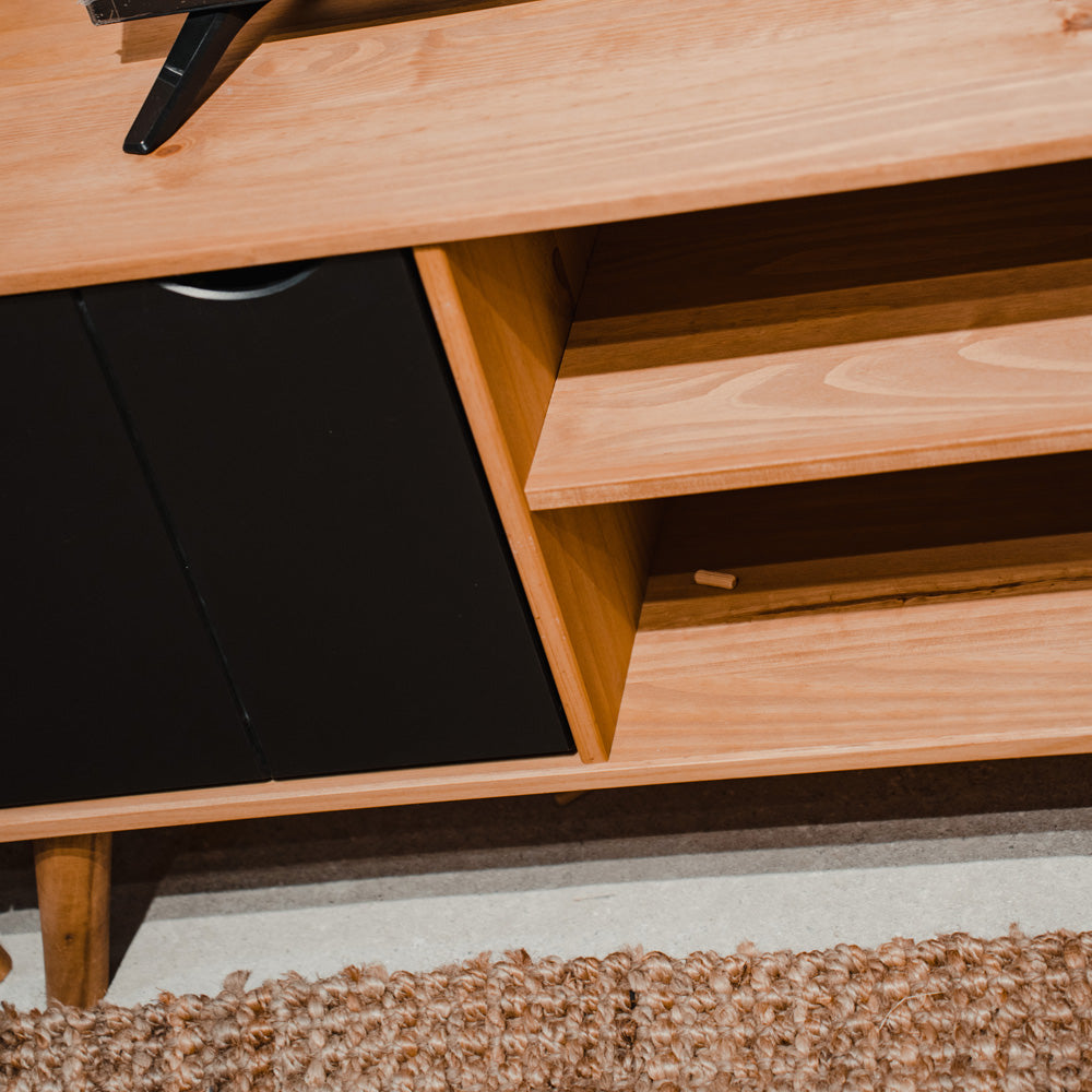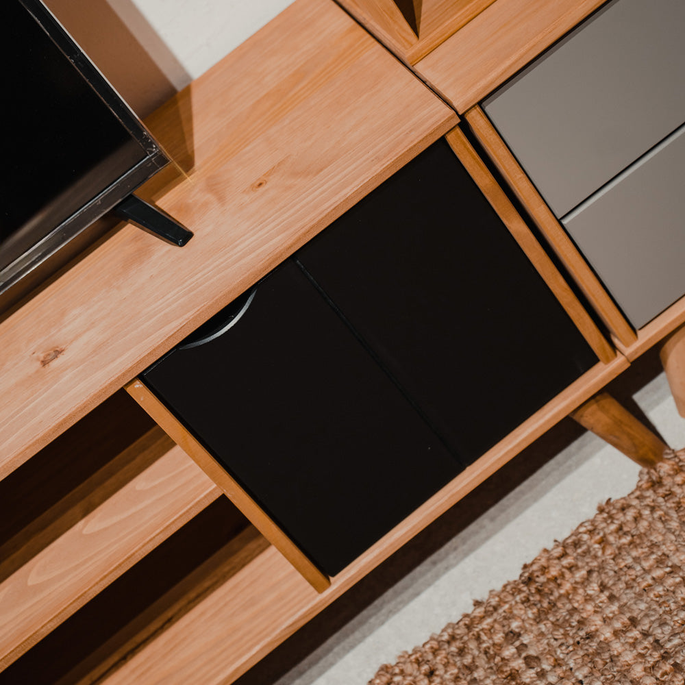 Rack Madera Maciza 2 cajones y estantes Linea Berlín
