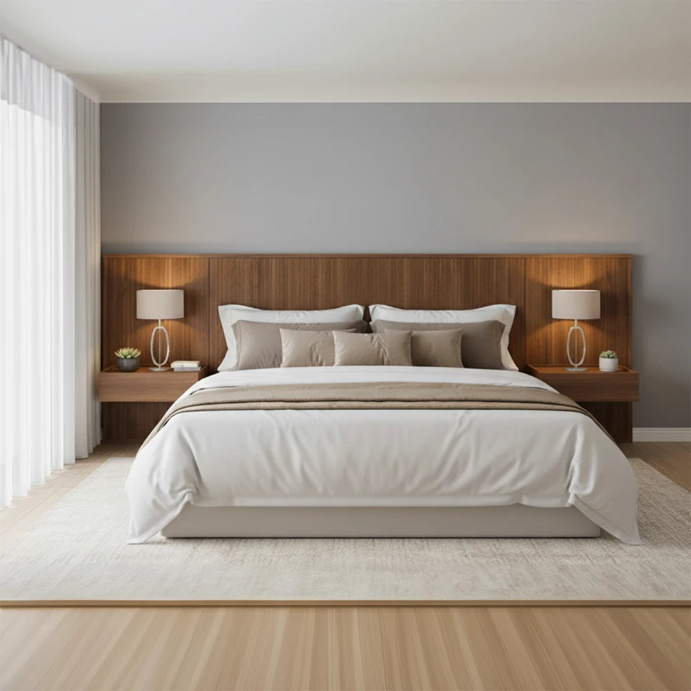 Respaldo King continuo con mesa de luz - Nordik - Marrón
