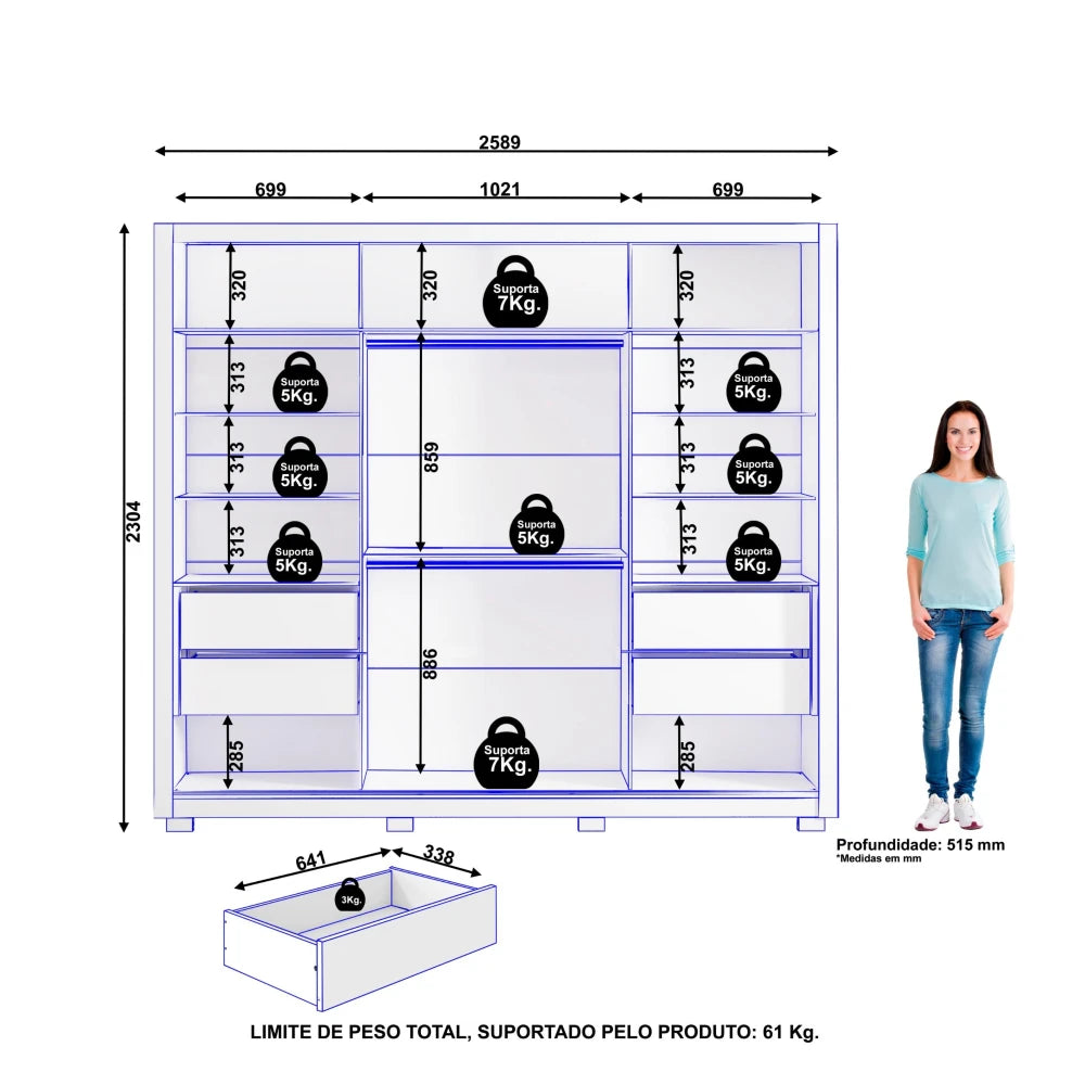 Ropero 2 Puertas 4 Cajones - Línea Glam - Marrón/Blanco