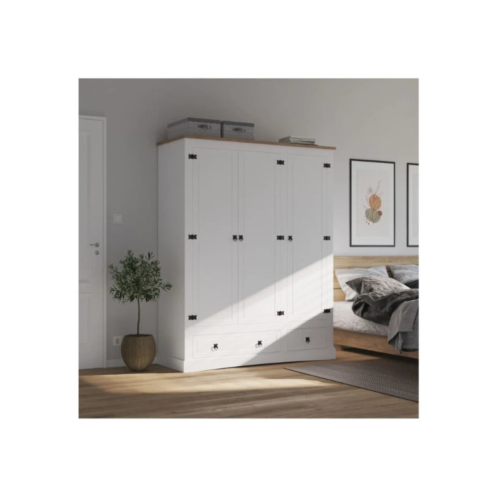 Ropero 3 Puertas - Madera Maciza - Blanco
