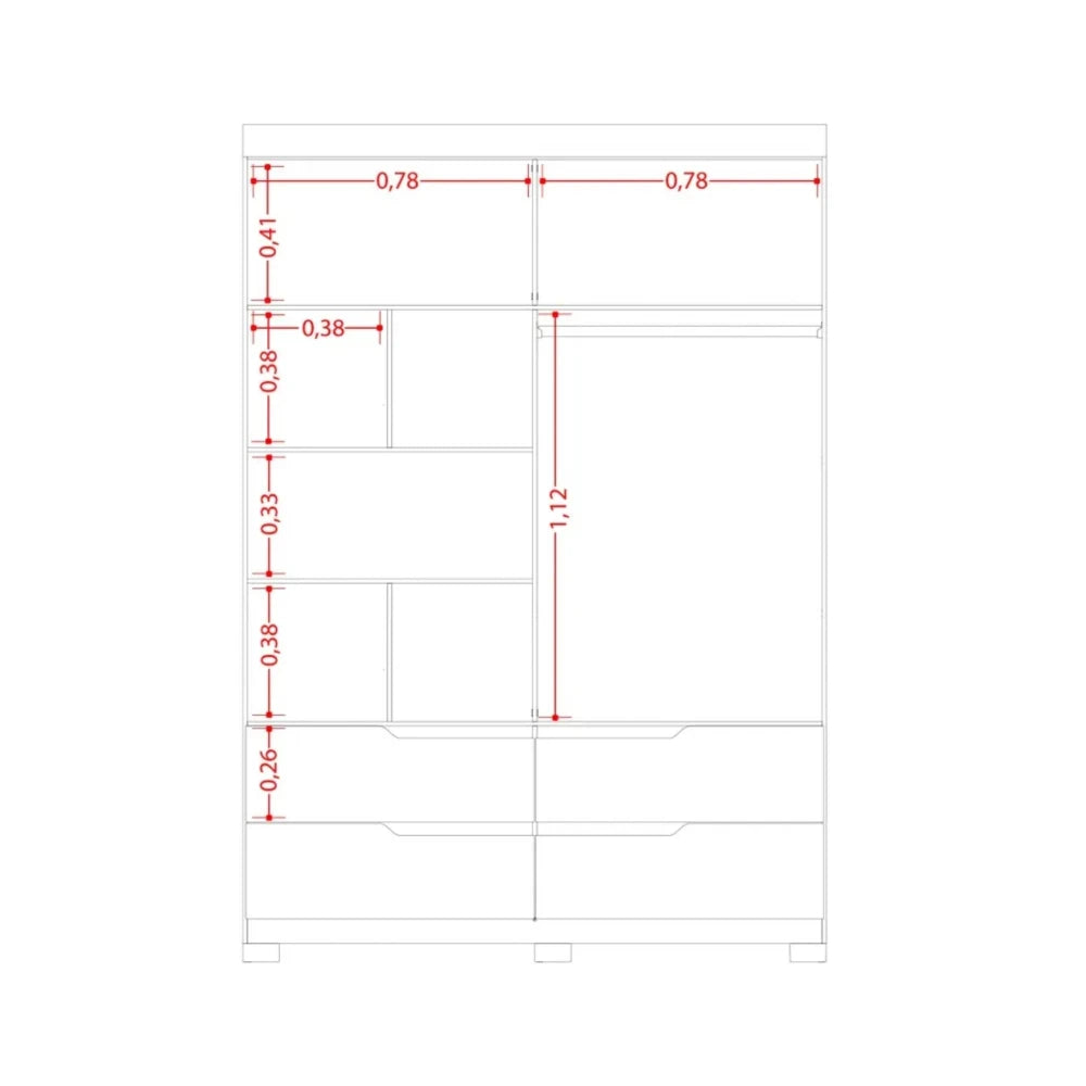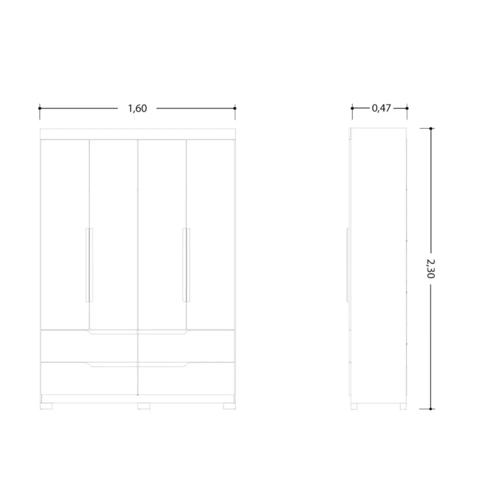 Ropero 4 puertas 4 cajones - Línea FIT - Marrón