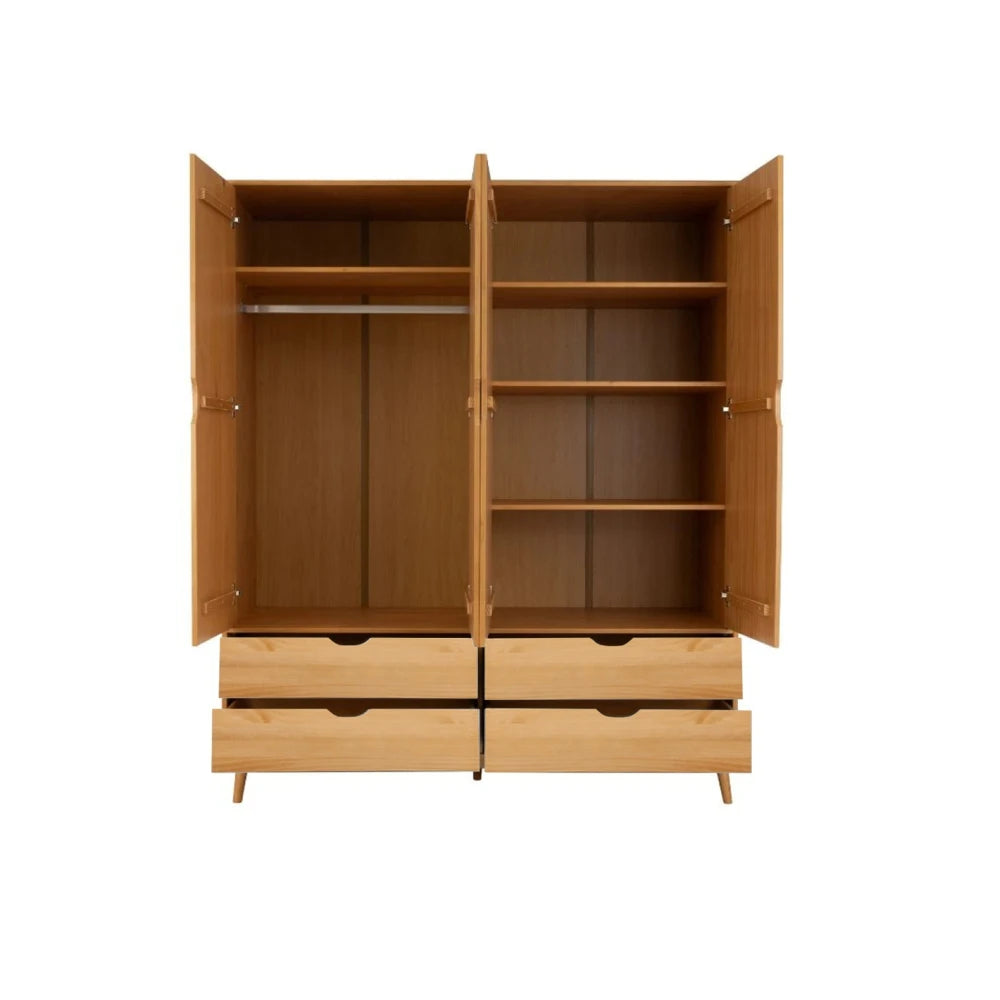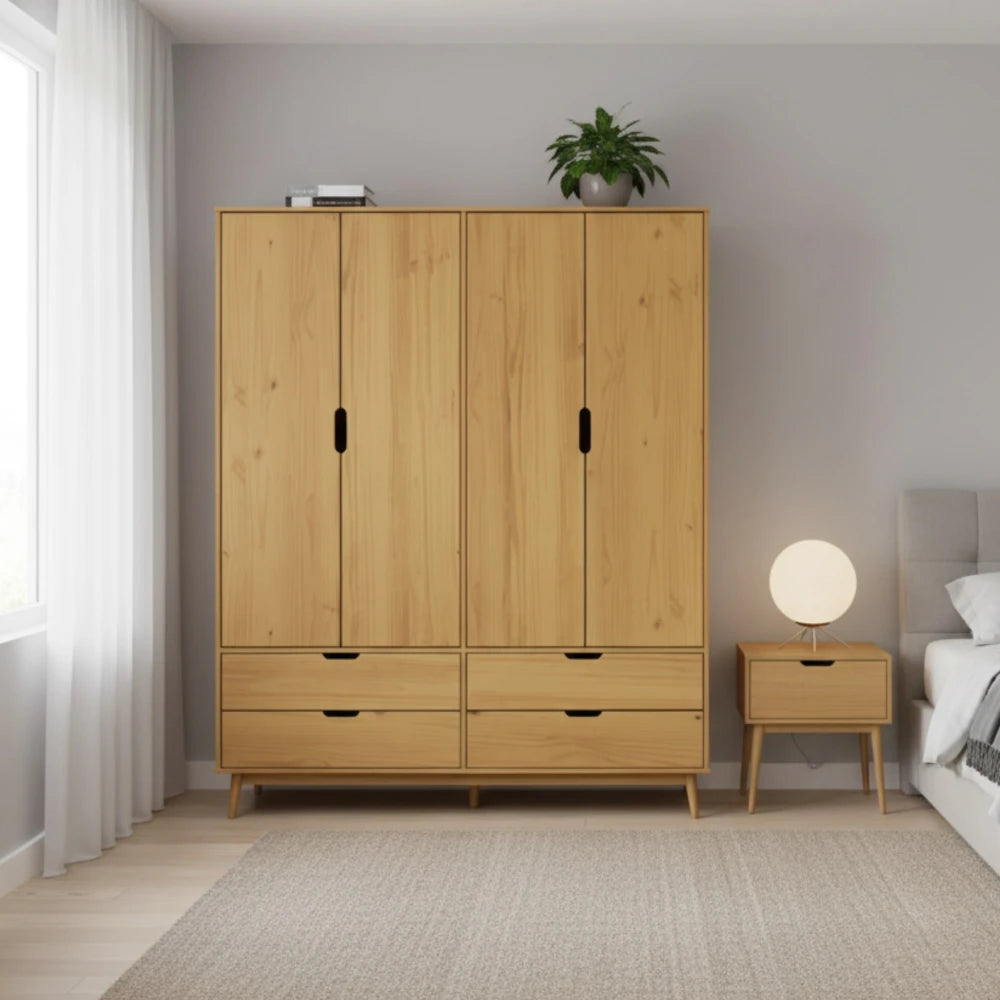 Ropero - 4 Puertas - 4 Cajones - Línea Praga - Roble