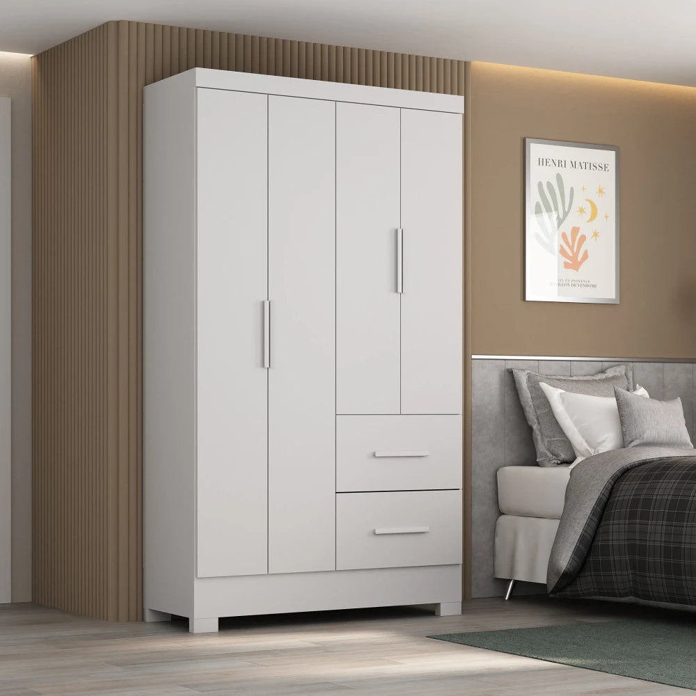 Ropero Max 4 Puertas 2 Cajones - Línea Glam - Blanco