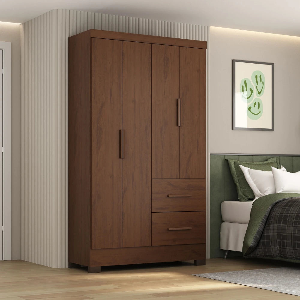 Ropero Max 4 Puertas 2 Cajones - Línea Glam - Nogal