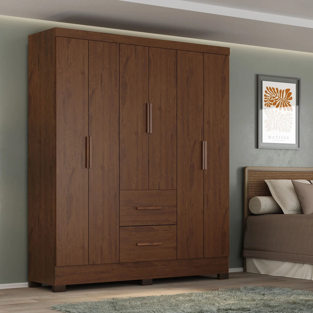 Ropero Max 6 Puertas 2 Cajones - Línea Glam - Nogal